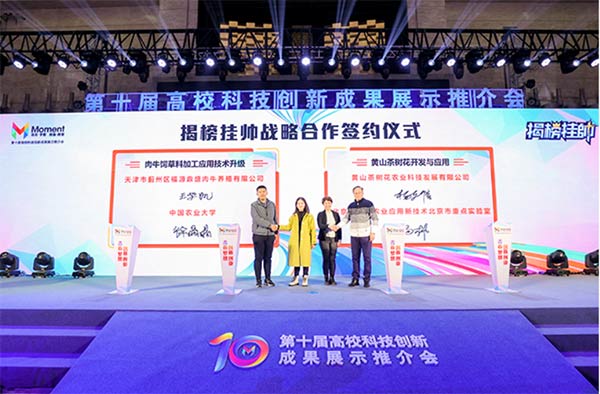12月21日,第十届高校科技创新成果展示推介会在京举行颁奖活动,4个科技创新项目进行展示路演,6个“揭榜挂帅”的项目现场结对签约。